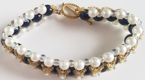 • Fascinating Dark Beaded Bracelet with Faux Pearls